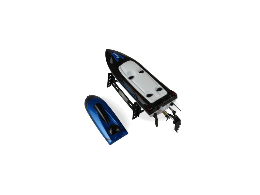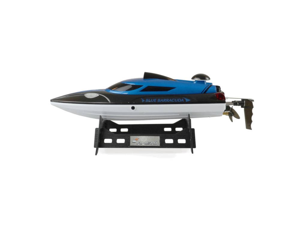 ZÁVODNÍ ČLUN BLUE BARRACUDA V2 JE PERFEKTNÍ VOLBOU PRO ZAČÍNAJÍCI KAPITÁNY. LOĎ MÁ JEDNODUCHÉ OVLÁDÁNÍ, FUNKCI "AUTO ROLL BACK", A DOSAHUJE RYCHLOSTI AŽ 25 KM/H,